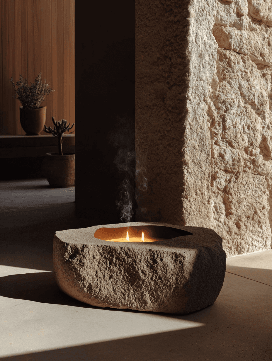 Athar is a small Marrakech-based fragrance house that works with architects and developers to translate the character of a building into scent. For ROCA, they produced a limited candle edition tied to each residence. Zhar burns with warm cedar and argan wood. Jebel runs cooler, Atlantic salt and raw stone. Each candle is poured into a vessel made from the same aggregate used in the Hara furniture series.