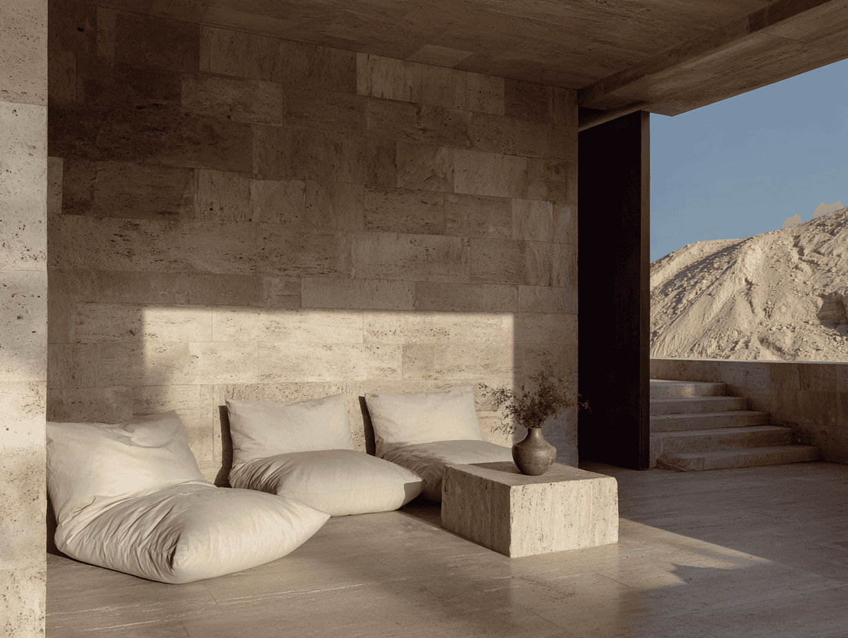 Sahl is a Casablanca-based furniture studio working exclusively with materials sourced from within Morocco. For ROCA, they produced a limited series of twelve cast stone pieces distributed across Safra and Jebel. Each object was made from aggregate pulled directly from the project sites, meaning no two pieces read exactly the same. The series includes low seating, side tables, and a single monumental bench.